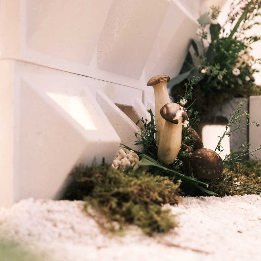在和Pc商量靈堂的設計時,她說要把蘑菇融入在靈堂各處,因為那是忠益近來的創作靈感。