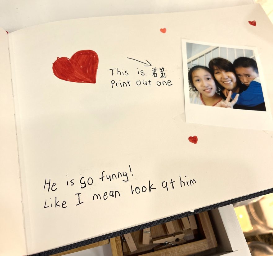 他們要我幫忙打印媽媽平时和他們的自拍照,然後會把照片一張張地貼進紀念冊,再很認真地在照片周圍畫滿愛心和寫下想對媽媽說的話。
